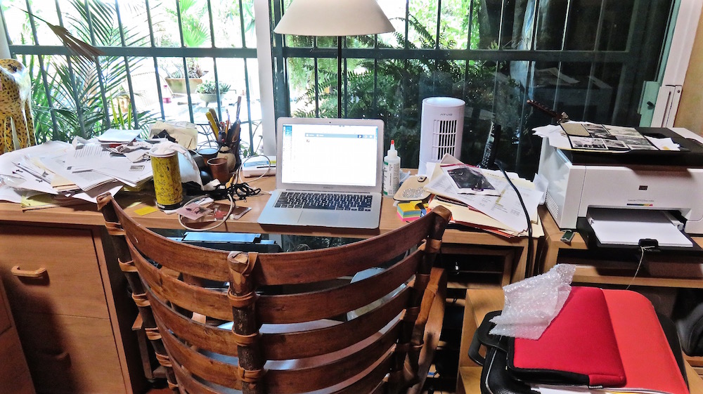 Also on the shelves are boxes of art made at the beach and boxes of art supplies from when I was doing art activities with the girls at La Olla orphanage last year. Other boxes of art supplies from this summer’s art camp sit on the floor in front of the cabinets along with assorted things taken out of the back of my car to enable other things to be put into it.