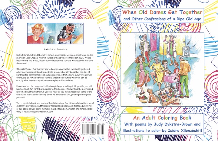 You saw it here first! The book inspired by poems I wrote for prompts on my blog is now available on Amazon. It is an adult coloring book with poems by me and illustrations to color by Isidro. Above and below are the front and back cover.